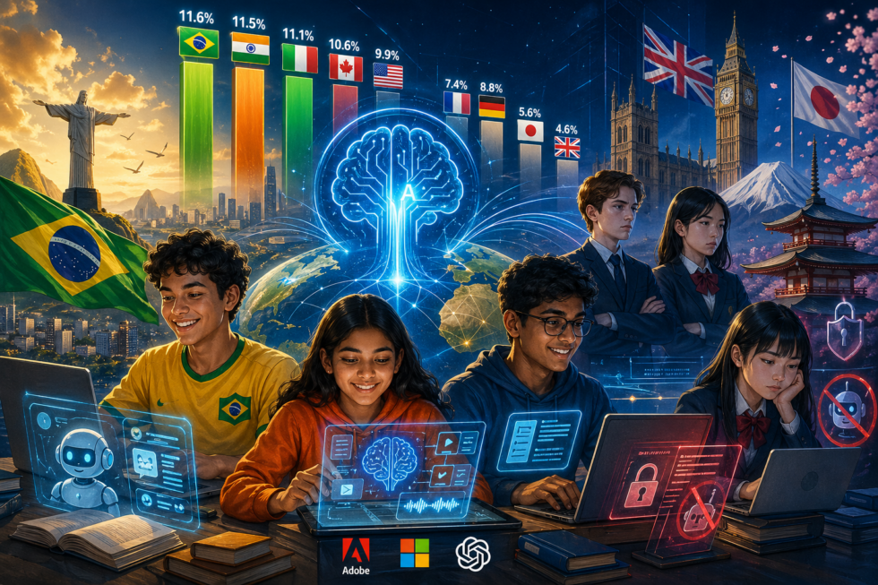 #AI #ArtificialIntelligence #PendidikanDigital #EdTech #Pelajar #TeknologiPendidikan #AIinEducation #GlobalEducation #DigitalTransformation #India #Brasil #Jepang #Inggris #FutureOfWork #AIStudents #LearningInnovation #DigitalSkills #EducationTrends #AIAdoption #TechInSchools