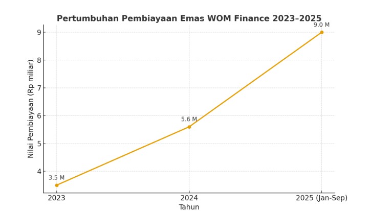 - Pertumbuhan pembiayaan emas WOM Finance tembus Rp9 miliar hingga September 2025, naik lebih dari 60% secara tahunan.